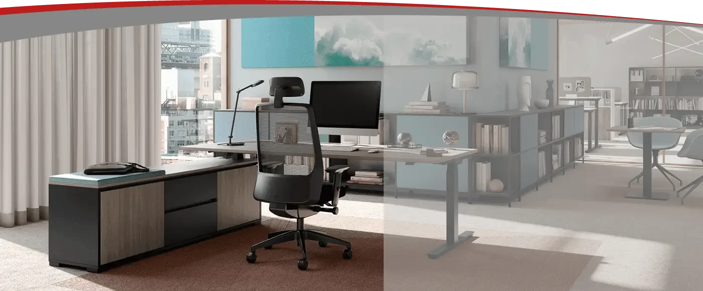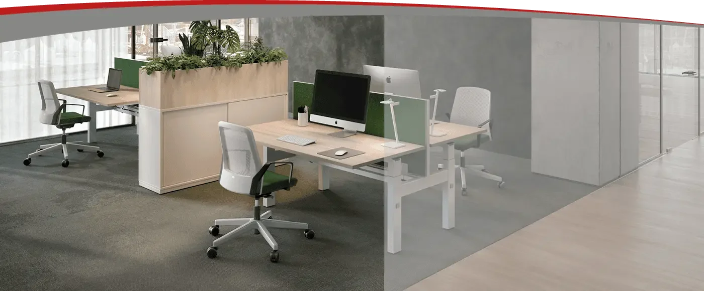 Wir bei der Büroausstattung VOGT kennen die Anforderungen an eine effektive Büroeinrichtung, die Raum für vielfältige Arbeitsweisen, Aufgaben und Ansprüche verspricht. Das bedeutet, dass die Büromöbel die Kommunikation und Teamarbeit fördern, während auch konzentriertes Arbeiten und ungestörte Telefonate möglich sind. In unserer Konzeption und Planung achten wir neben der Gestaltung zum effizienten Arbeiten in erster Linie darauf, dass die Mitarbeitenden sich wohlfühlen und gern arbeiten. Schaffen Sie mit unseren Akustiklösungen ruhige Bereiche zur Steigerung der Arbeitsproduktivität und bringen Sie Licht ins Dunkle mit einer intelligenten Lichtplanung. Das Ergebnis wird für Sie eine ergonomische Arbeitsumgebung, in der ein angenehmes Arbeitsklima herrscht.